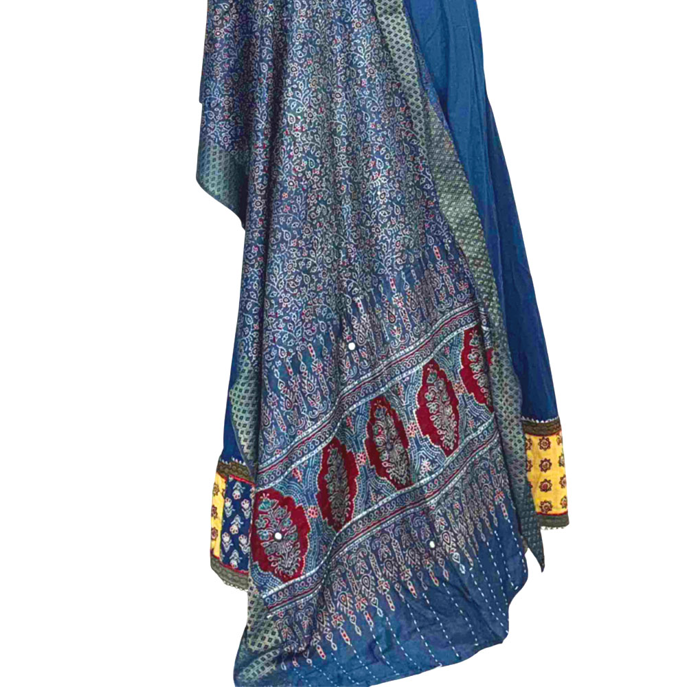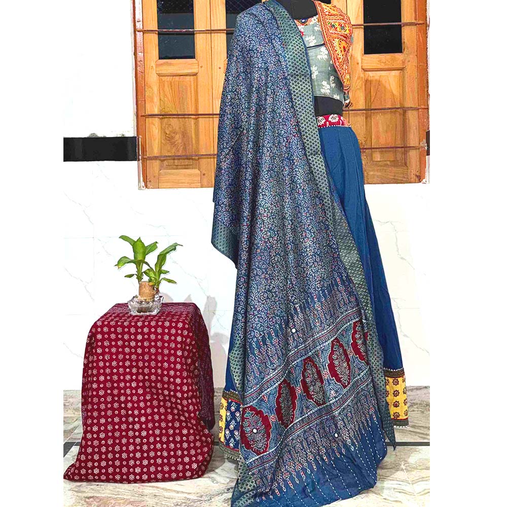 - Craftsmanship: Hand-Block Printed Ajrakh + Hand-Appliqued Mirror Work