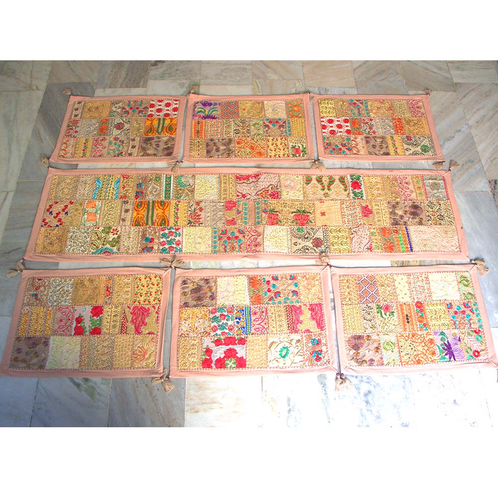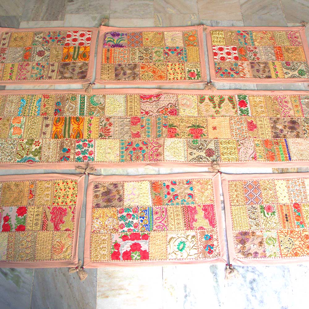Patchwork Table Runner Vintage Style Rajasthani Hand Embroidered Table Placemat
