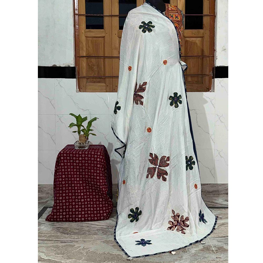 Artisanal applique handwork on cotton dupatta with textured patterns Shop Now!
