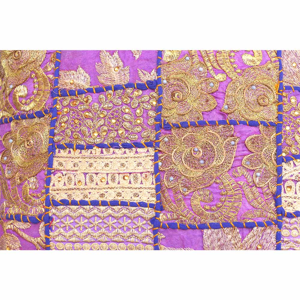 (Exclusive) Captivating Barmeri Work Cushion Cover Voilet – Handcrafted Embroidered Patchwork (Flower and Leaf Design)