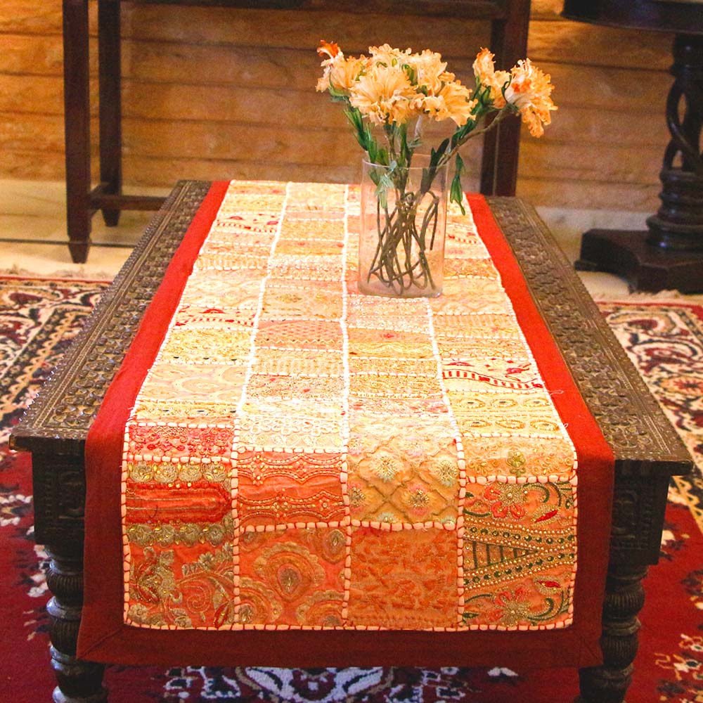 orange barmer round table runnerBenefits of Choosing Handcrafted Khambadiya Over Machine-Made