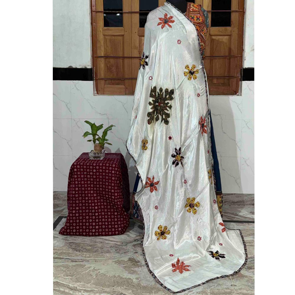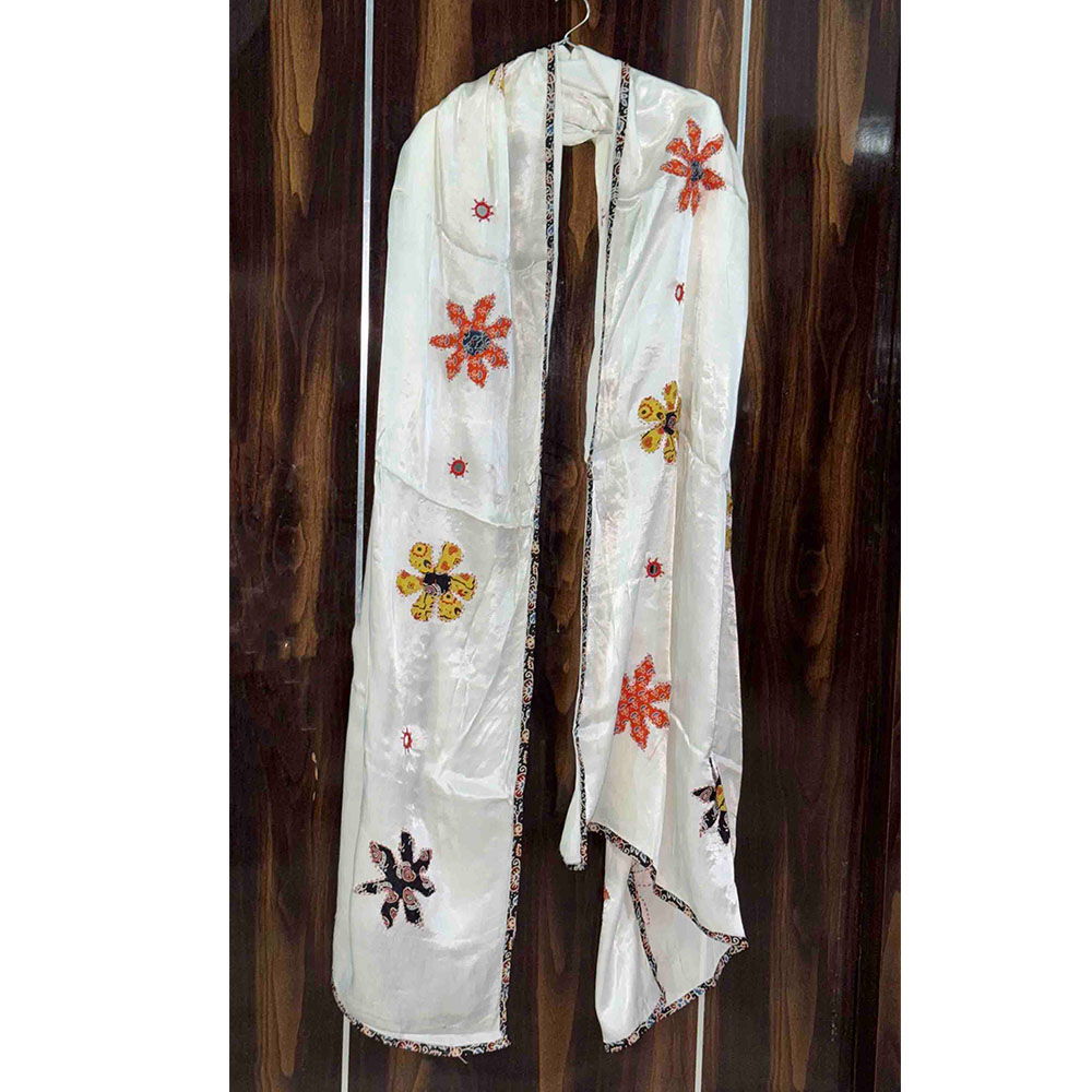 Mesmerizing Mirror Work Dupatta: Off-White Modal Silk with Luxurious Applique