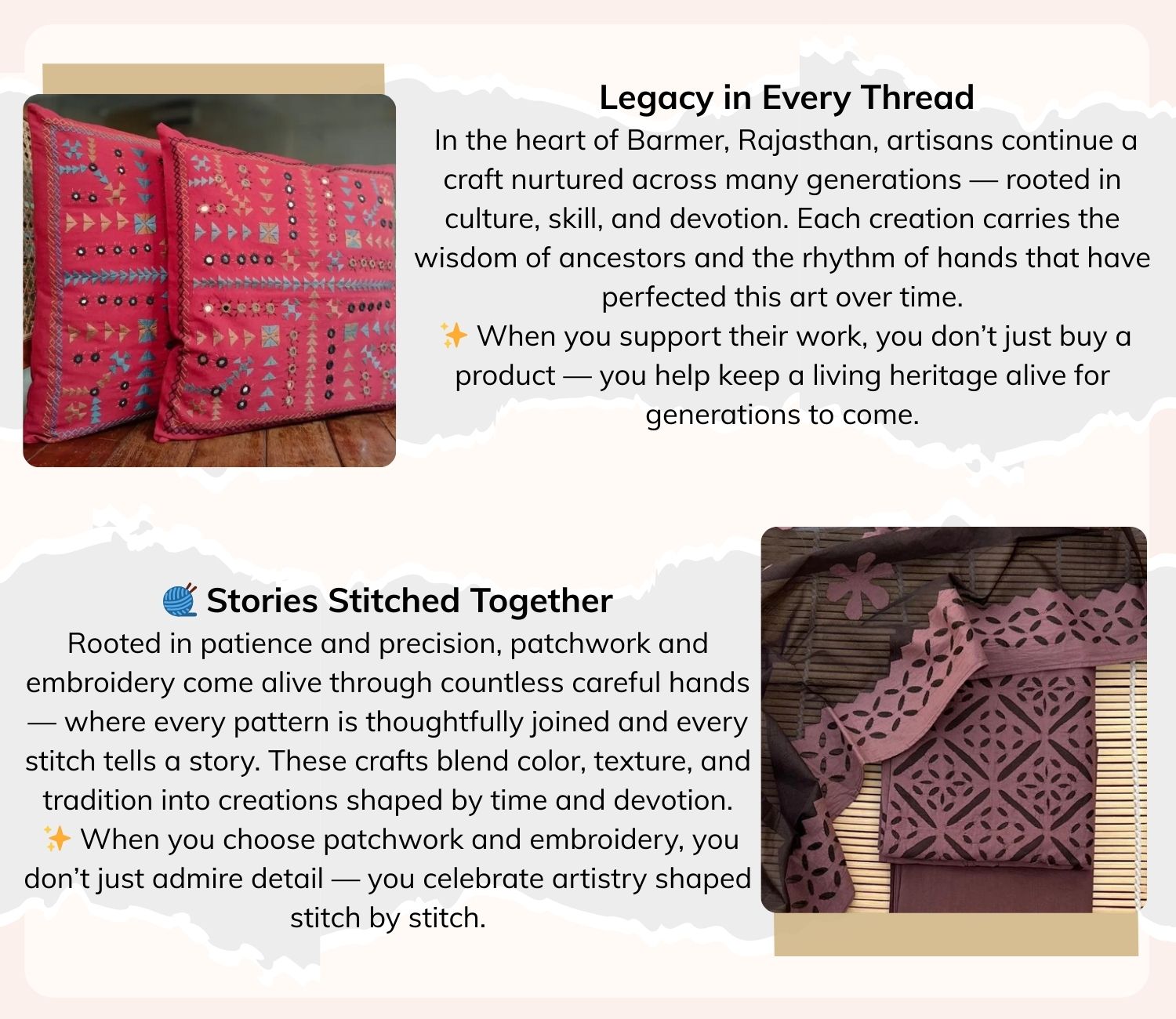 It’s perfect for celebrations like Eid, Navratri, or as a sophisticated gift. Rajasthani artisan skillfully embedding mirrors in traditional applique work