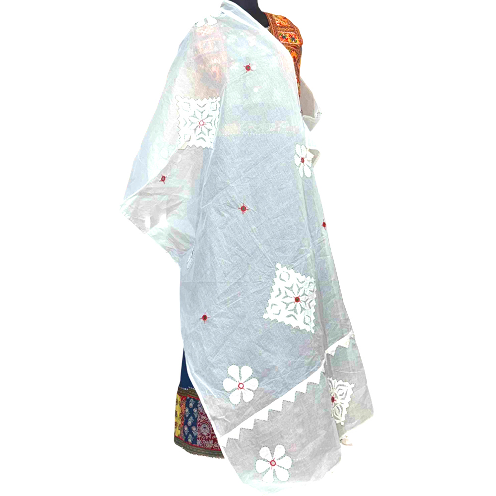 Exquisite Applique Stole: Organdy with Delicate Patch Work Elegance